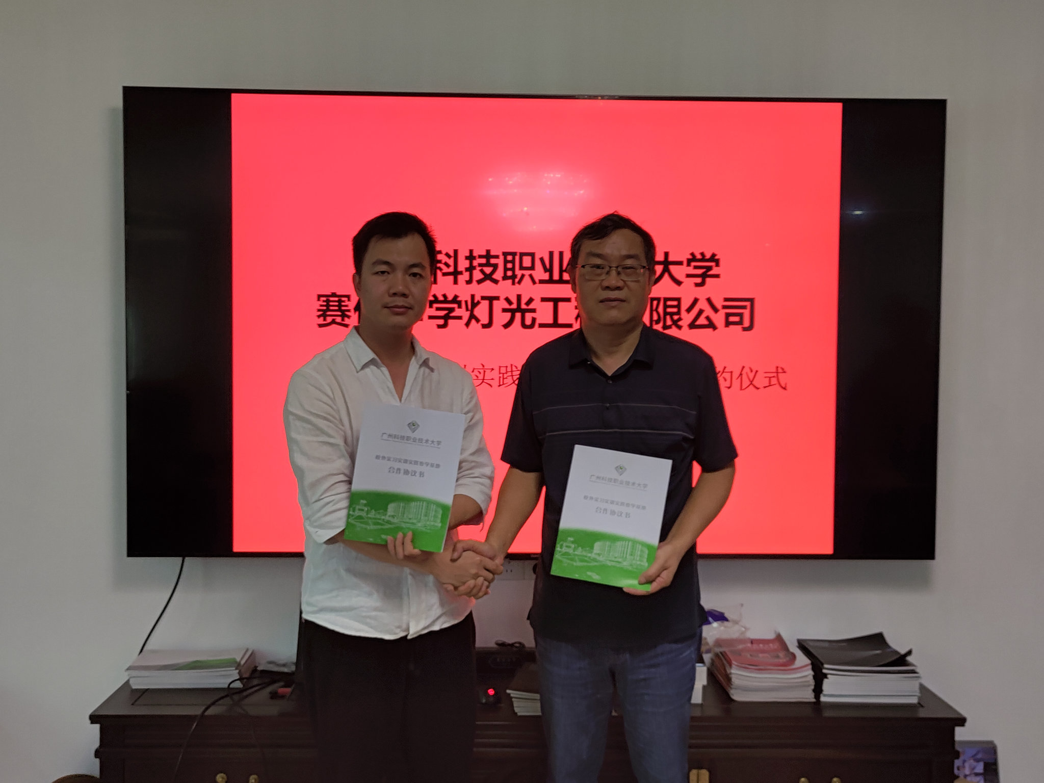 赛佳声学灯光与“广州科技职业技术大学(Guangzhou Vocational and Technical University of Science and Technology)实习就业实训实践教学基地”签约仪式