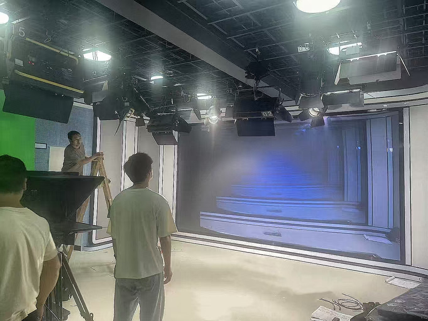 东莞市谢岗镇全媒体中心包括演播厅、录音间舞美声学装修、专业灯光安装、普通照明及插座、现场的基层处理、综合布线以及演播室设备等内容,每一处细节都经过严格的质量把控与精细处理,确保空间的稳定性与美观度。